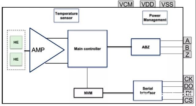 对于高速电机的角度传感器,最重要的性能是能够准确快速响应角度的变化,Senis的高速角度传感器芯片FAMAS利用最新的专利技术算法,x轴与y轴霍尔单元检测磁场偏角的信号,通过差分放大器后将信号送至芯片运算控制单元,芯片中的角度计算单元根据运算控制单元中的信号,根据特定算法精确计算角度变化,最后由输出单元根据配置输出相对应信号(PWM, Analog, SPI 等)根据动态补偿值可迅速按准确计算输出角度值,信号延迟达到业内最短的1us,可测量电机转速为业内最高20万转。